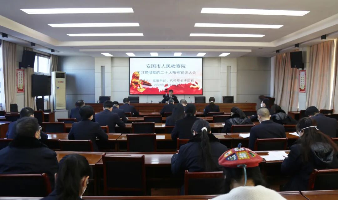 会上,李迎初带领全体干警集中学习了党的二十大报告、中国共产党第二十次全国代表大会关于十九届中央委员会报告的决议、河北省委、保定市委及安国市委关于学习宣传贯彻党的二十大精神的安排部署要求。