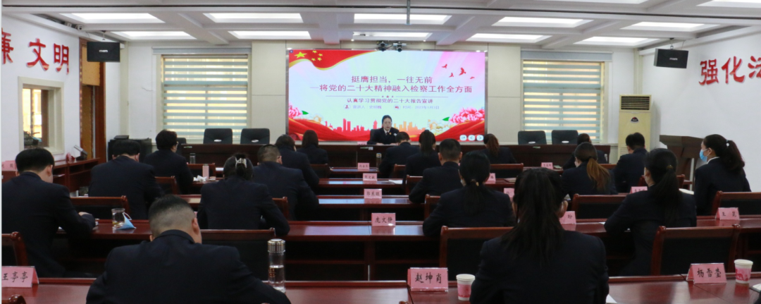 宣讲报告会指出,党的二十大是一次承前启后、继往开来、彪炳史册的历史性盛会。报告中专章部署“坚持全面依法治国,推进法治中国建设”,充分体现了党中央对全面依法治国,对发挥检察机关法律监督职能作用的高度重视、殷切期望。史明巍从充分认识党的二十大的重大意义、全面准确学习领会党的二十大精神、推动党的二十大精神落地生根、开花结果三个方面,对党的二十大精神作了系统阐述,并结合曲阳检察工作实际进行了深入解读。宣讲报告会要求,检察机关学习贯彻党的二十大精神,根本是要把党的二十大确立的重大方针政策、重大决策部署,结合贯彻落实《中共中央关于加强新时代检察机关法律监督工作的意见》,不折不扣落实到位,更实担负起历史使命和时代重任。