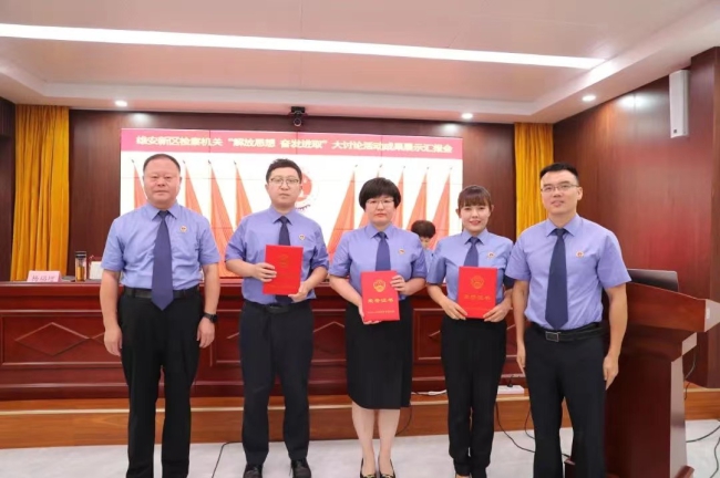 为深入学习贯彻省委十届二次全会精神、倪岳峰书记在雄安新区系列调研讲话精神、雄安新区半年工作会议精神,助力加快实现“五新”目标,8月31日,雄安新区检察机关以“展成效 谈举措 谱新篇”为主题,召开“解放思想 奋发进取”大讨论活动成果展示汇报会,积极构建上下联动工作格局,推动省委、新区党工委决策部署在新区检察机关落实落细。分院党组书记、检察长纪志明出席会议并讲话,党组副书记、副检察长杨静主持会议。