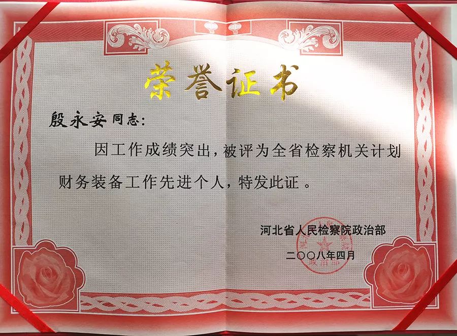 殷永安荣获全省检察机关计划财务装备工作先进个人