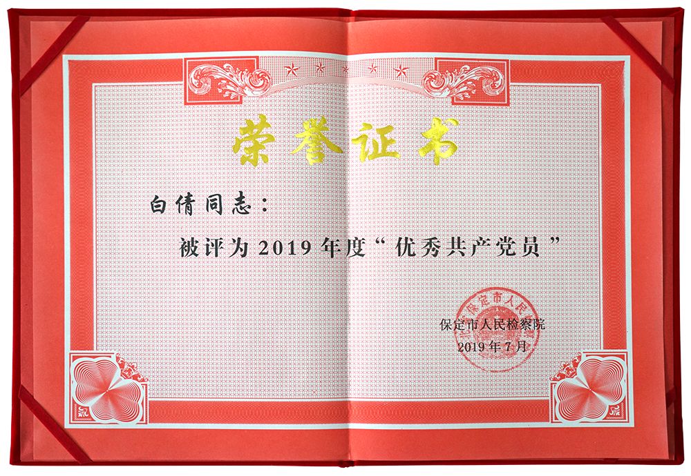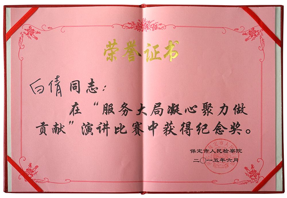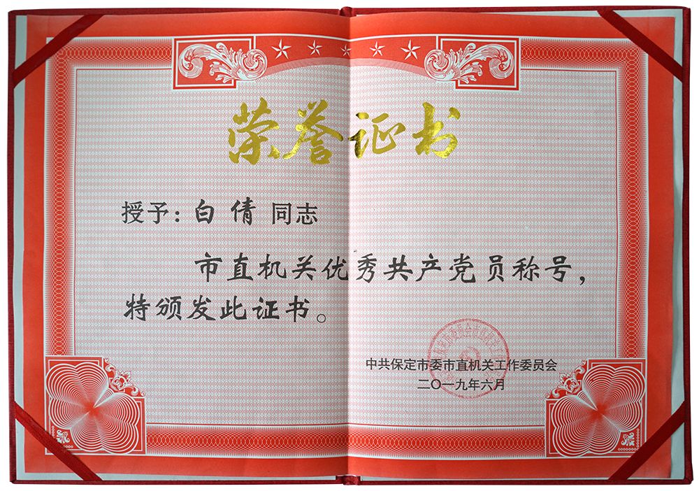 白倩同志因成绩突出多次荣获荣誉证书