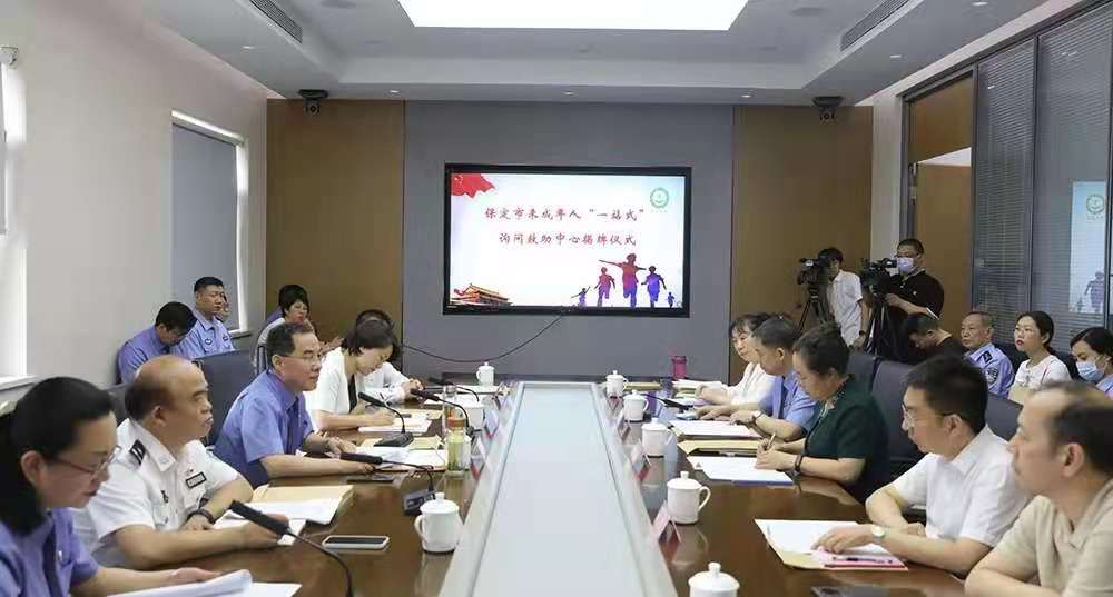 王庆品、段秀丽、张广、齐峰共同为保定市未成年人“一站式”询问救助中心揭牌。