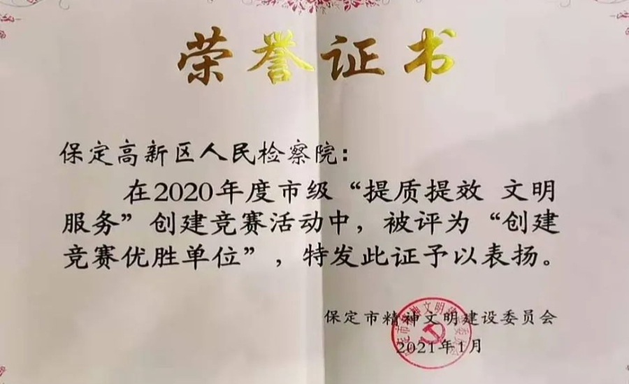 高新区检察院,作为保定市人民检察院派出机构,2016年举行揭牌仪式,并于2017年1月16日全面启动检察工作。5年来,高新区检察院奋发进取、积极作为,立足聚焦主责主业孵化器、创新创优工作实验田、培养历练人才储备库、引领检察文化新高地、服务保障发展示范院五大功能定位,将市院12343总体工作思路转化为高新区院12345检察工作施工路线图,以创新实干的实际行动、一抓到底的工作韧劲,推动高新检察事业发展取得新突破、再上新台阶。