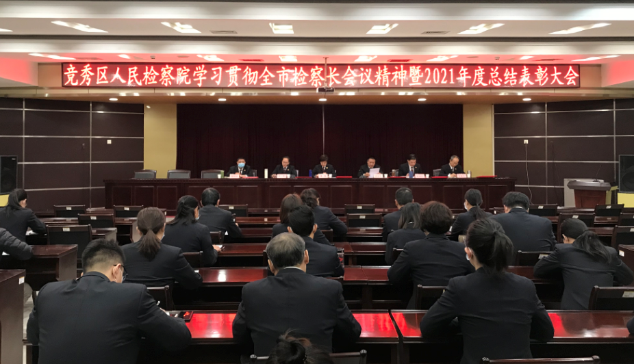 2月24日上午,竞秀区检察院召开学习贯彻全市检察长会议精神暨2021年度总结表彰大会。院党组成员、副检察长高福有主持会议,全体干警参会。