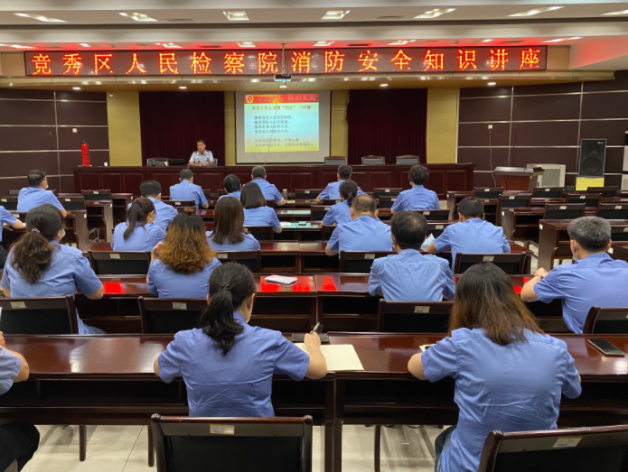 为强化检察干警的消防安全意识,提高突发事件的应急处置能力,有效预防和减少火灾事故的发生。9月9日上午,竞秀区检察院邀请保定市应急管理局消防安全宣传科杨华南教官为全院检察干警进行了一场消防安全知识讲座。