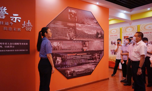 在讲解员的带领下,大家先后参观了党建展厅、新媒体中心、荣誉室。在这里,中国共产党从苦难到辉煌的百年奋斗史历历在目,全国模范党员和时代楷模的光辉事迹深入人心,警示墙上列举的重大贪污腐败案例触目惊心,90余年的人民检察发展史薪火相传。新媒体中心播放着我院近年拍摄的抖音视频,展现竞秀检察干警风采。荣誉室里陈列的表彰奖励,记录着我院的辉煌成绩。