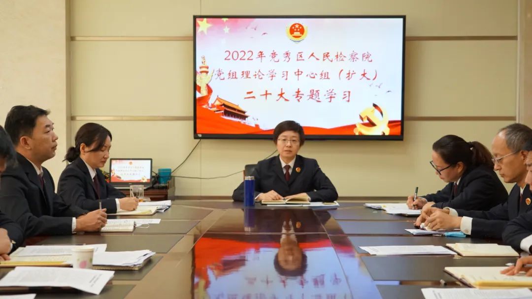 10月18日,竞秀区检察院召开党组理论学习中心组(扩大)会议,专题学习贯彻中国共产党第二十次全国代表大会精神。