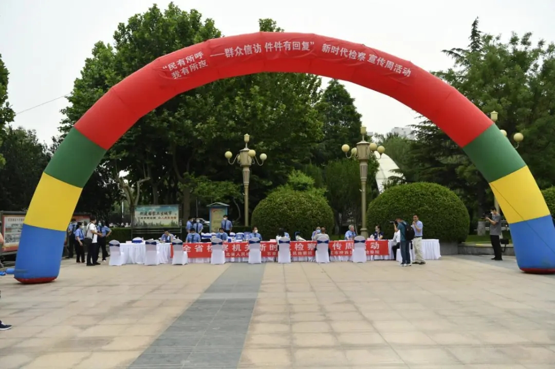 6月9日上午,河北省检察院、石家庄市检察院和桥西区检察院控告申诉检察部门干警来到石家庄西清公园广场,开展“民有所呼、我有所应—群众信访件件有回复”法治宣传活动。