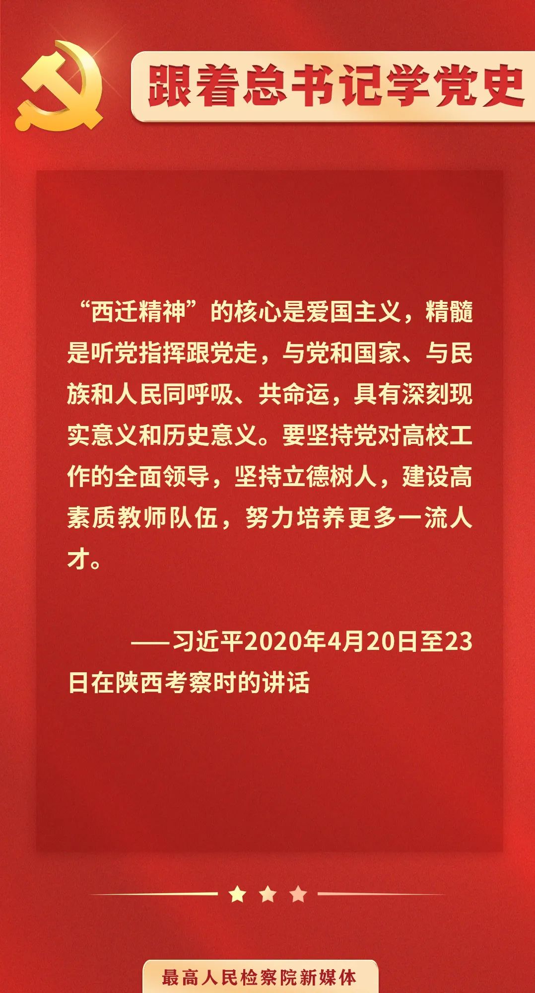 为庆祝中国共产党百年华诞,最高检新媒体开设“跟着总书记学党史”专栏,号召全国各级检察机关积极学党史、悟思想、办实事、开新局。