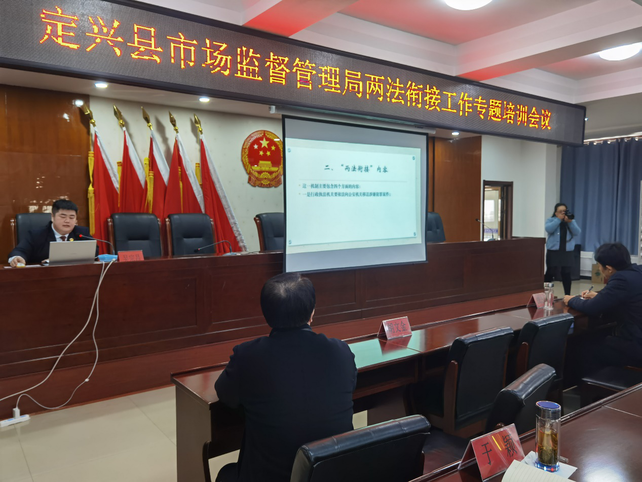 为深入推进行政执法与刑事司法衔接工作的开展,促进严格规范执法,3月4日上午,定兴县检察院到县市场监督管理局开展了“两法衔接”专题讲座。