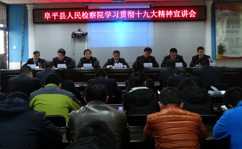 结合宣讲内容,田国锋对全院干警提出四点要求:一是学习十九大精神要入脑入心融汇贯通。学习政治理论的目的就是要使政治信仰更加坚定,我们学习十九大精神,就是要用新时代中国特色社会主义思想来武装头脑,自觉提升政治理论素养,坚定理想信念,避免出现以文件落实文件、以会议落实会议的现象。二是学习方式要灵活多样。要发挥好我院官方微信微博作用,做到平面媒体与网络媒体、文字宣传与口头宣传、检察局域网与自媒体、会议宣传与大众宣传相结合,要通过多种形式的学习讨论,在我院迅速掀起比学赶帮超的热潮。三是与全力以赴做好当前检察工作与谋划今后一段时期检察工作结合起来。始终坚持抓重点、补短板、强弱项,扎实做好年底各项工作全面冲刺,确保年底前各项任务顺利完成。提前谋划,以党的十九大精神为引领,研究制定一批有前瞻性、有针对性的工作举措,为新时代做好阜平检察工作凝聚智慧和力量,推动各项工作再上新台阶。四是争做宣传十九大精神的表率。政治处要制作好党的十九大精神学习宣传计划和授课表,院领导带头宣讲十九大精神,班子成员和各科室负责人要深学深悟十九大精神,既要当好学习员,也要当好宣传员。同时包村的同志还要结合当前全县脱贫攻坚的各项政策在分包的村、社区、学校开展宣讲,把十九大精神讲清楚、讲明白,营造学习贯彻十九大精神的强大声势。