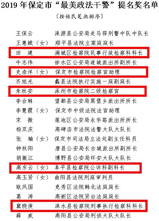 评选结果揭晓!7名检察干警分获2019年保定市“最美政法干警”及提名奖