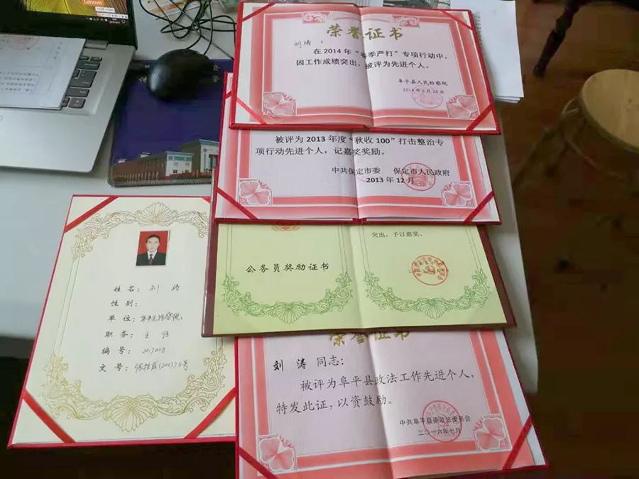 该同志政治过硬,谦虚谨慎、积极进取,认真践行“忠诚、为民、公正、廉洁”的政法干警核心价值观,尽职履责,甘于奉献,始终坚持在平凡的岗位上忠实履行着一个人民检察官的法定职责和神圣使命。他诚实做人,真诚待人,甘于奉献,勇挑重担,受到领导和同志们一致好评。2013年被保定市委、政法委评为“秋收100”打击整治专项行动先进个人;2014年被评为“春季严打专项行动先进个人”;2014年度优秀公务员;2016年被县政法委评为政法工作先进个人;2017年被市院授予三等功;2018年被县委评为县优秀驻村工作队第一书记。