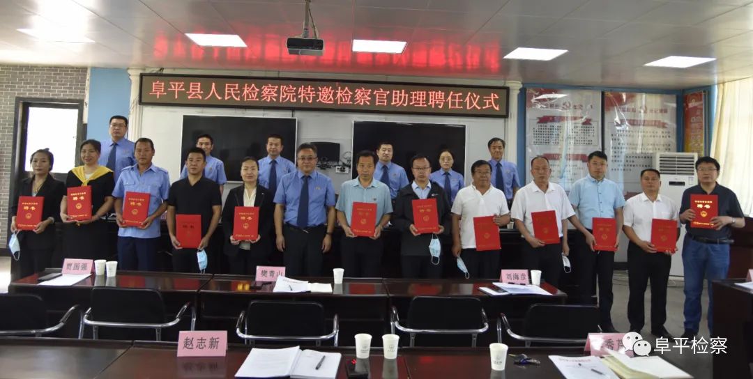 5月26日,阜平检察院举办了“特邀检察官助理”聘任仪式,聘请县住建局等12个部门13名同志为特邀检察官助理。 仪式上,宣读了《阜平县人民检察院行政机关专业人员兼任检察官助理工作实施办法(试行)》和聘任决定,党组书记、检察长贺啸剑检察长为特邀检察官助理颁发聘书,现场签订了履职承诺书。