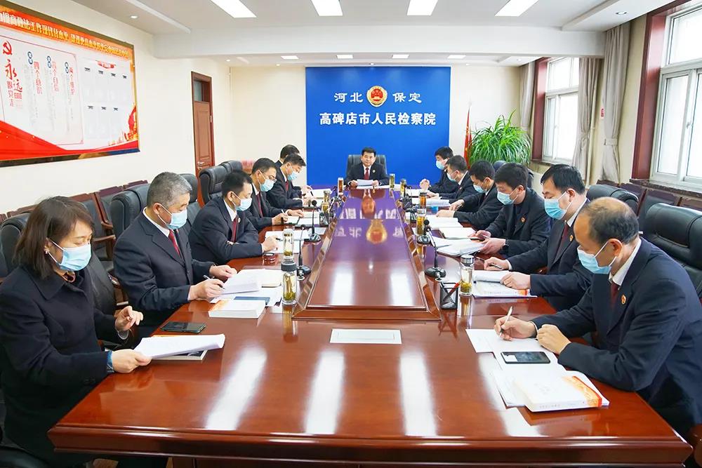 2月16日,高碑店市检察院检察长王进文主持召开党组扩大会,落实全市检察长会议精神。