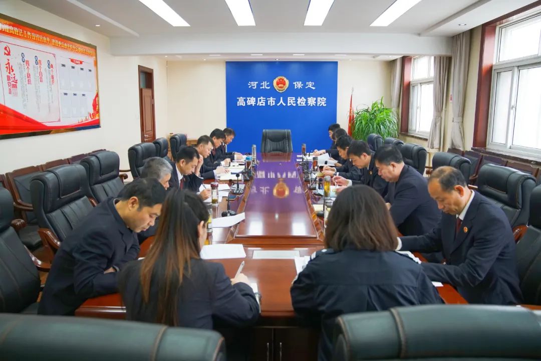 3月21日,高碑店市检察院召开党组扩大会,专题学习落实全市检察机关业务数据分析研判会精神。