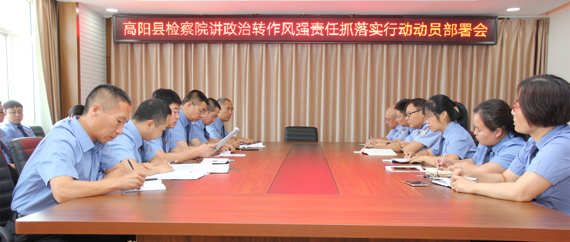 6月11日,高阳县检察院组织召开“讲政治、转作风、强责任、抓落实”行动动员部署会。