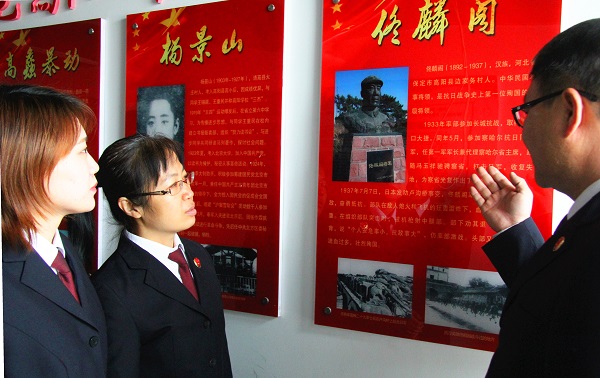 随后,苏坤飞向干警们生动的讲解了红色高阳老一辈革命先烈的光荣历史。佟麟阁、杨景山、高蠡暴动......一张张老照片、一件件光荣事迹,凝聚着革命先烈坚定的信念和不屈的意志。