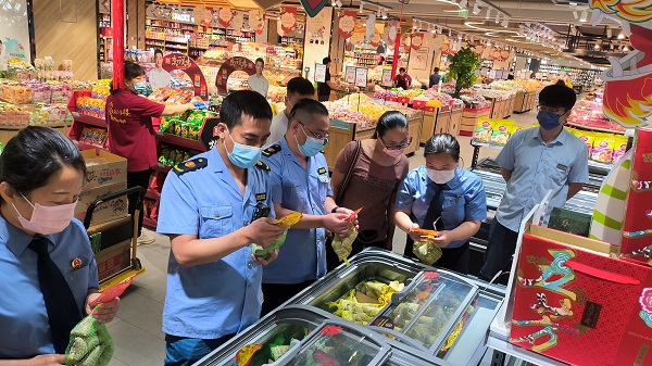本次检查主要查看销售的成品粽子是否标注食品名称、生产日期、生产批号、保质期、生产厂家名称、地址、联系方式等事项。对在检查过程中发现的个别超市标注不规范问题当场进行整改,督促商家进一步增强食品安全主体责任意识。