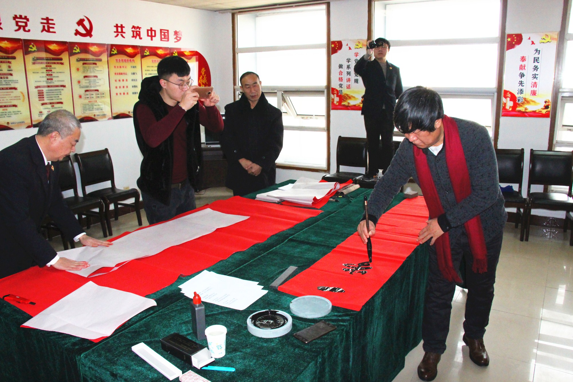 为保证书写效果,我院邀请到高阳籍知名书画家辛万增老师前来,与我院副检察长齐映天、民事行政检察科科长杨晓军、执检科科长贾洪秋等同志共同执笔,书写春联,县委宣传部对我院举办这一活动十分重视,宣传部网信办主任白娟同志也到我院参加此次活动。一上午的时间,笔走龙蛇,银勾似画,我院共书写了春联50副,福字100张。当天下午,我院将书写好的对联与福字全部赠送给附近村的贫困村民、环卫工人和我县2017年度“保定好人”,为他们送上了我们检察机关的新年祝福。