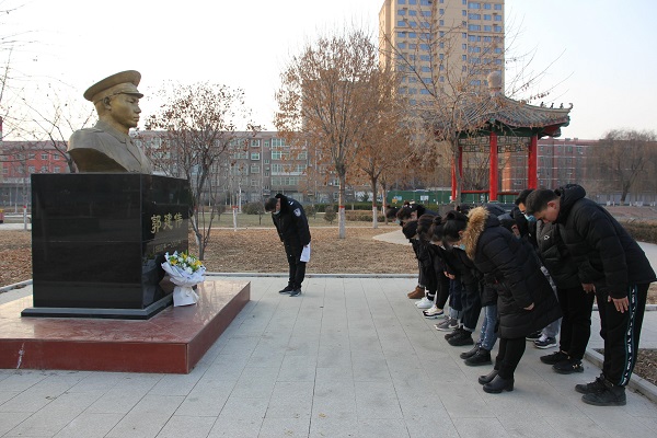 2021年1月4日上午,高阳县检察院组织党员干警来到高阳县人民公园郭建伟烈士铜像前开展纪念活动,干警们向烈士敬献鲜花,鞠躬悼念。
