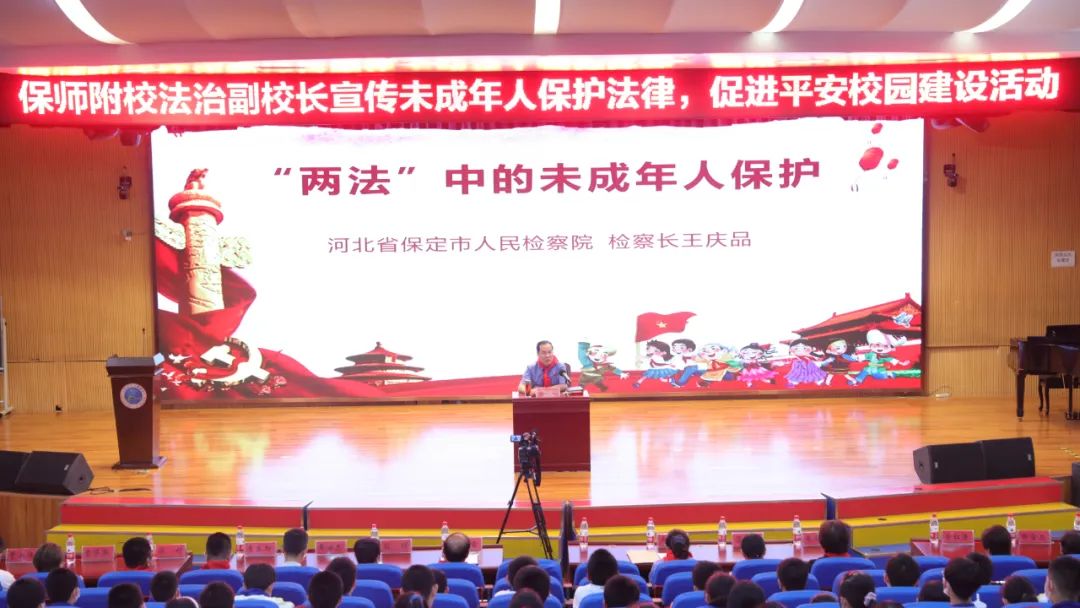 前不久,保定市检察院组织开展法治副校长“宣传未成年人保护法律促进平安校园建设”活动,作为保定师范附属学校的法治副校长,王庆品来到该校为400余名师生讲授了一堂生动而精彩的法治课。
