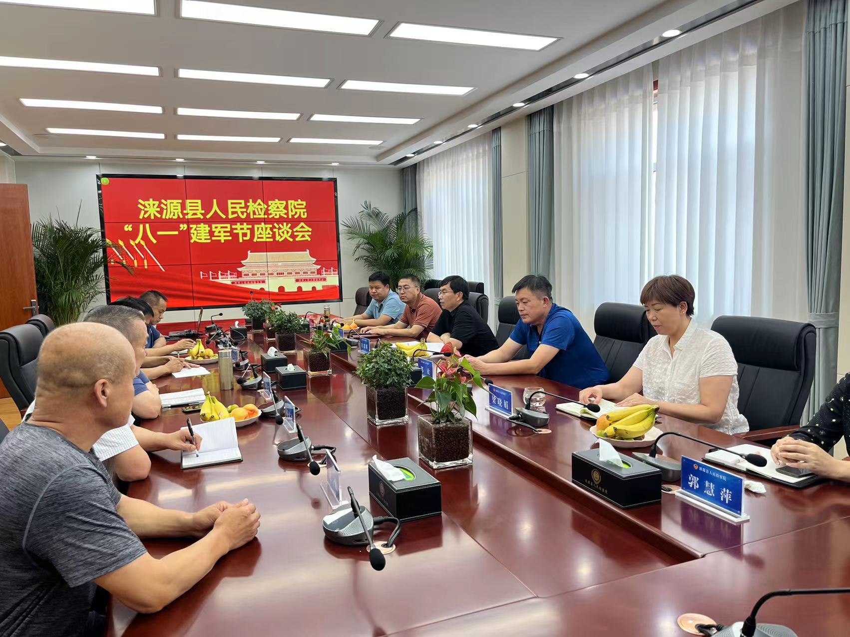 为庆祝中国人民解放军建军95周年,进一步赓续军人红色血脉,弘扬军人优良作风,涞源县检察院组织退役军人召开座谈会,院领导与全院在职退役军人共聚一堂,同庆“八一”。