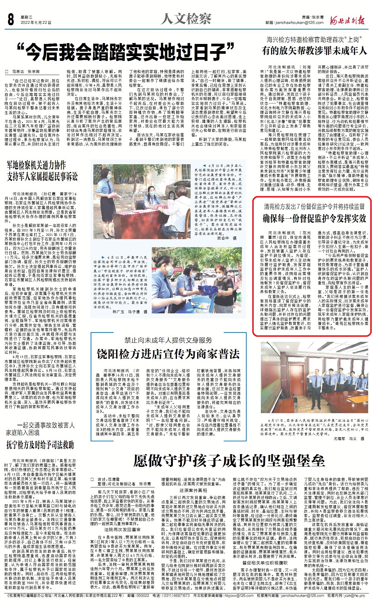 河北法制报讯 (范光辉 霍燃)近日,保定市清苑区人民检察院在办理侵害未成年人合法权益案件过程中,发现被害人监护人存在监护不到位情况。为督促、引导未成年人监护人主动有效履行监护职责,发挥家庭监护在保护未成年人工作中的重要作用,该院结合案情及社会调查情况,有针对性地制发7份督促监护令,督促未成年人监护人依法履行抚养和教育义务。