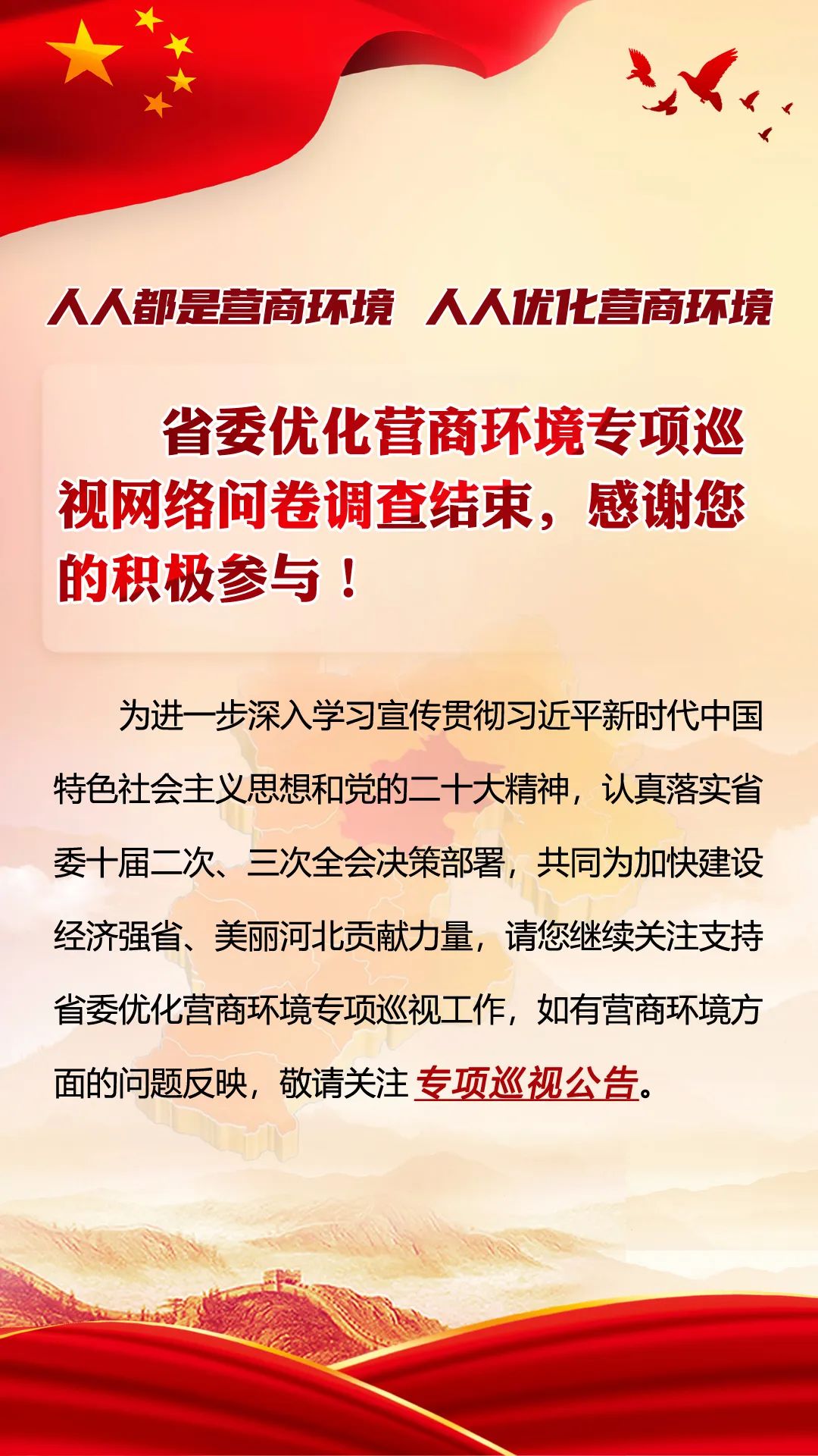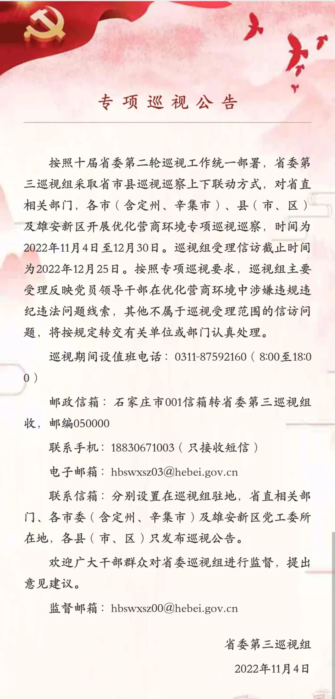 专项巡视公告:11月4日起,河北开展优化营商环境专项巡视巡察