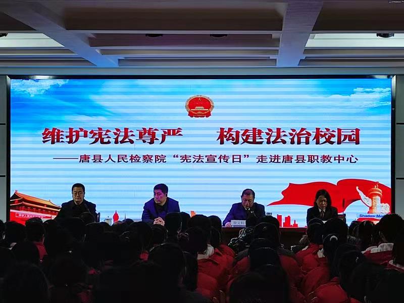 2020124日,在我国第七个“国家宪法日”到来之际,唐县人民检察院党组书记、检察长徐文科带领检察干警走进唐县职教中心,开展“维护宪法尊严构建法治校园”宪法宣传活动,为在场500多名师生送去了一堂生动的有深刻意义的法治课。