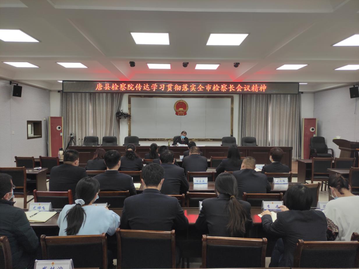 党史学习3月16日下午,全市检察长会议召开后,唐县检察院迅速组织全体干警会传达学习贯彻落实全市检察长会议精神。会上,党组书记、检察长徐文科向干警们全面传达学习了傅君佳检察长今天在全市检察长会议上的重要讲话,宣读上年考核结果,并结合唐县院工作实际,逐项分析当前核心数据情况,为今年的检察工作作出了具体安排部署,划定了今年的工作重点,为各部门部署了接下来的工作任务。