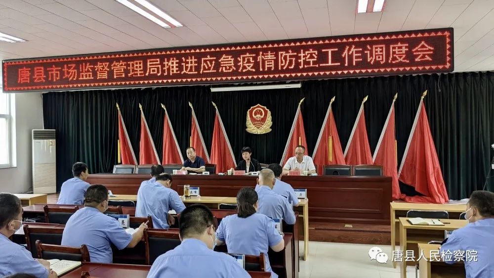 活动结束后,副县长贾琇清及检查组一行在唐县市场监督管理局召开了疫情防控工作调度会,进一步明确了当前阶段的防疫工作任务,压实了各相关单位的工作责任。县检察院检察长付亚辉同志参加会议并作表态发言,他强调,检察机关将紧紧围绕县委重点工作,紧急任务,主观能动,充分履职尽责,特别是发挥公益诉讼检察集督促、协同为一体的履职优势,共同助力全县疫情防控工作稳妥进行。