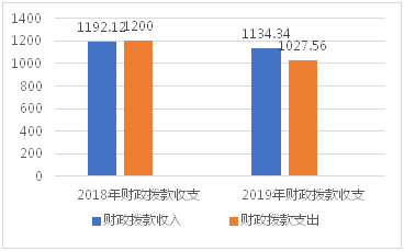 本部门2019年度形成的财政拨款收支均为一般公共预算财政拨款,其中本年收入1134.34万元,比2018年度减少57.78万元,降低4.8%,主要是人员调拨,经费减少;本年支出1027.56万元,减少172.44万元,降低14.37%,主要是人员调拨,经费减少。