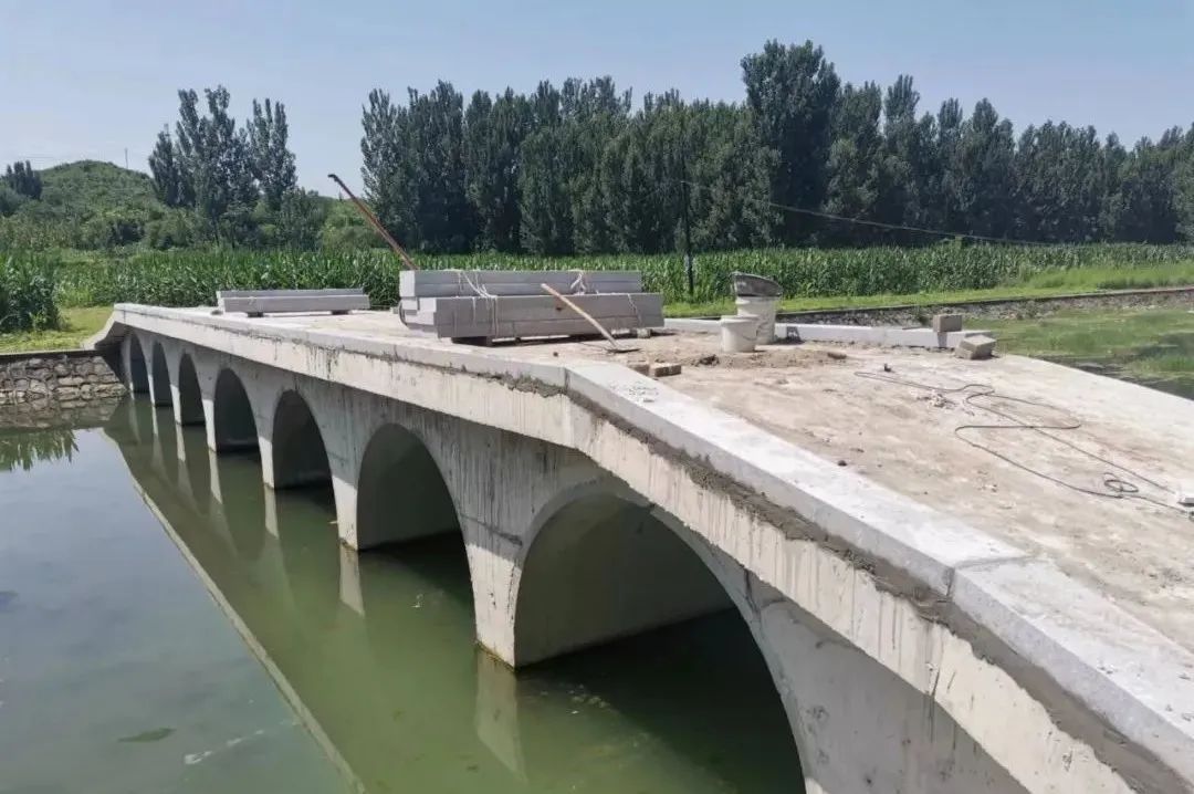 回到村委会,第一书记张冬青召集村干部集体商讨制定修桥计划。经过多次协商,最终决定与某企业进行沟通协调,由其出资修建,工作队负责联系有关部门,为桥梁重建提供政策和技术支持。随后,驻村工作队员多次与易县水利局、河道管理部门工作人员现场踏勘,力求在确保行洪安全的基础上以最快速度修建桥梁,恢复通行。工作队员王坡、孙冰积极参与到现场测量、施工方案策划等具体施工细节中,并与出资企业积极协商,努力争取修桥资金。半个月后,6万元修桥资金到账。不到两个月的时间,一座结构牢固、造型美观的钢筋混凝土拱桥顺利竣工,驻村工作队员的努力换来了回报。