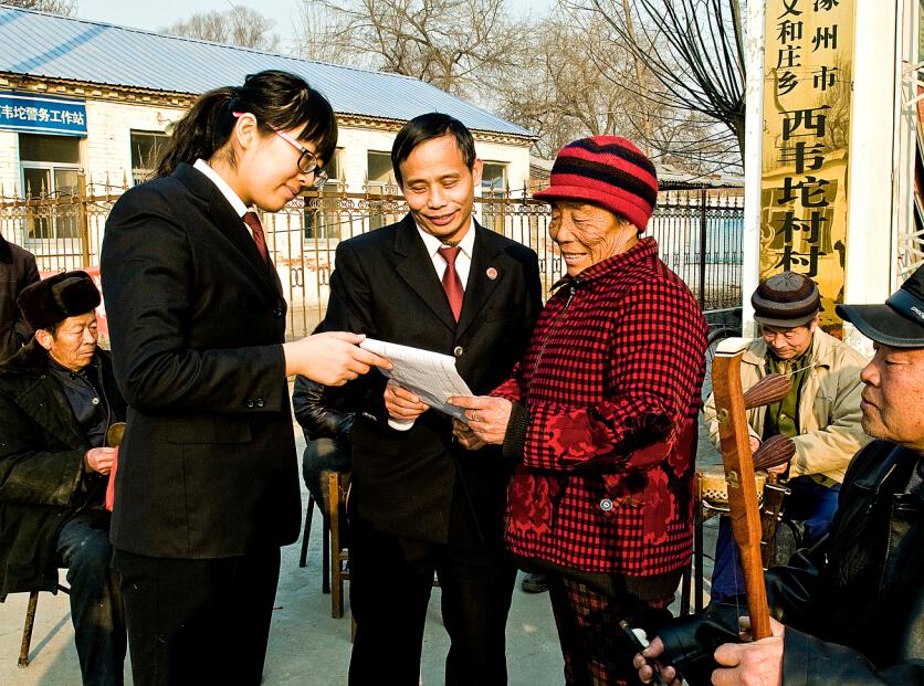 为活跃农村文化生活,涿州市人民检察院驻西韦陀村工作站检察官与村民自编、自演文艺节目宣传法律知识。