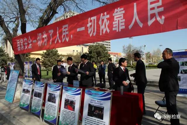 2017年4月15日为第二个全民国家安全教育日,涿州市人民检察院于当天组织干警在市广场,开展了一次国家安全知识宣传活动,收效良好。