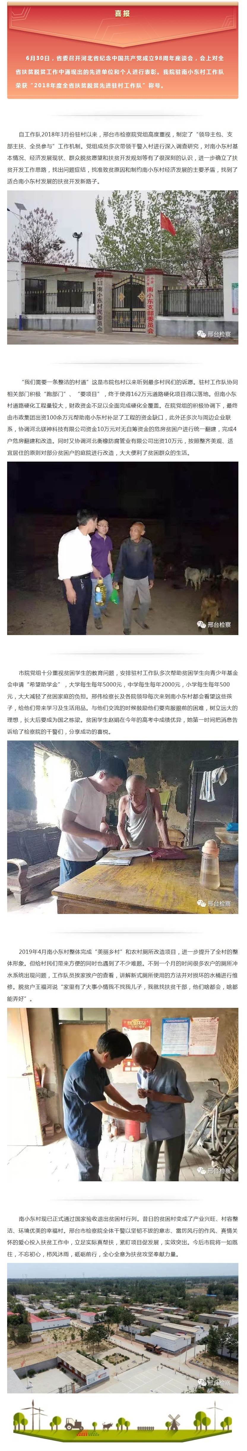 邢台市检察院扶贫工作队荣获“2018年度全省扶贫脱贫先进驻村工作队”荣誉称号