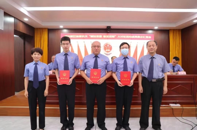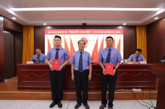 为深入学习贯彻省委十届二次全会精神、倪岳峰书记在雄安新区系列调研讲话精神、雄安新区半年工作会议精神,助力加快实现“五新”目标,8月31日,雄安新区检察机关以“展成效 谈举措 谱新篇”为主题,召开“解放思想 奋发进取”大讨论活动成果展示汇报会,积极构建上下联动工作格局,推动省委、新区党工委决策部署在新区检察机关落实落细。分院党组书记、检察长纪志明出席会议并讲话,党组副书记、副检察长杨静主持会议。