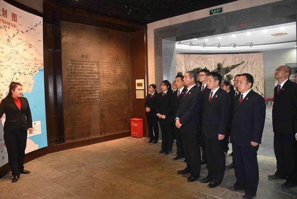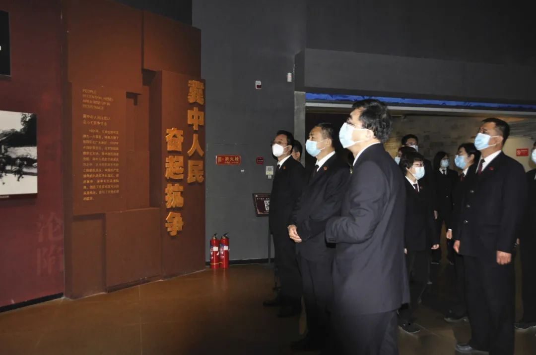 在晋察冀边区革命纪念馆,该院副检察长洪运杰带领全体检察干警在党旗前列队肃立、庄严宣誓,重温入党誓词,以铿锵豪迈的声音表达拥护党的坚定信念和为党的事业奋斗终生的决心。