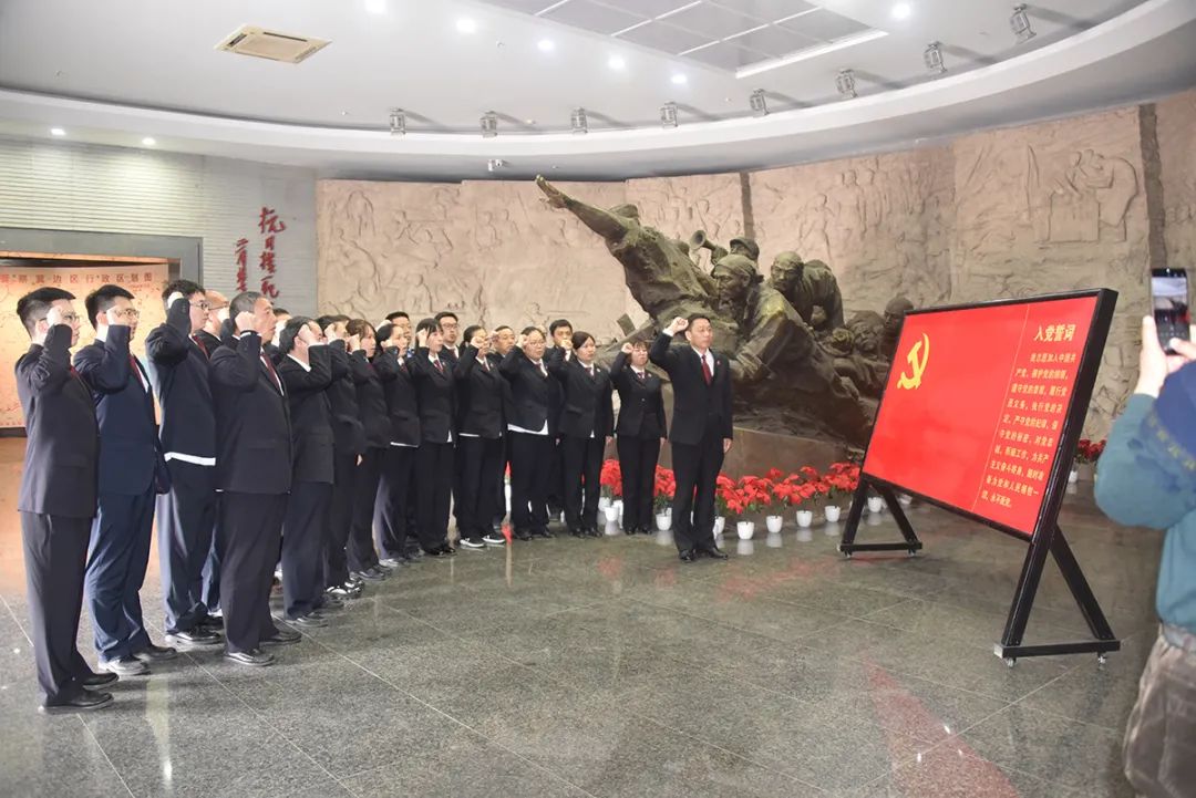 在晋察冀边区革命纪念馆,该院副检察长洪运杰带领全体检察干警在党旗前列队肃立、庄严宣誓,重温入党誓词,以铿锵豪迈的声音表达拥护党的坚定信念和为党的事业奋斗终生的决心。