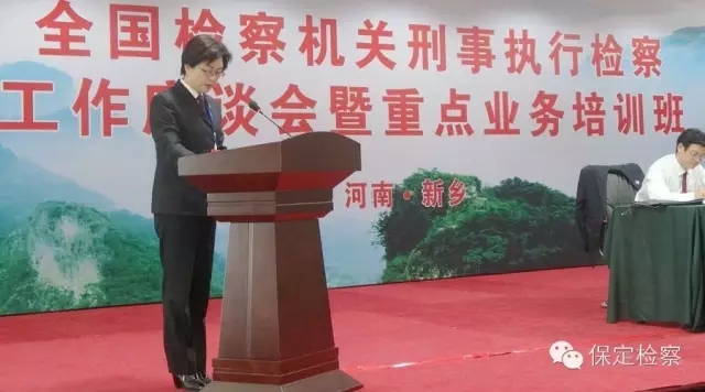 2016年4月11日至4月16日,全国检察机关刑事执行检察工作座谈会暨重点业务培训班在河南省新乡市检察官分院举行。保定市院党组成员、冀中院检察长卢彦芬代表保定市院做了“确立刑事执行检察部门办案主体地位,实现办案大市向办案强市转变”的典型发言。